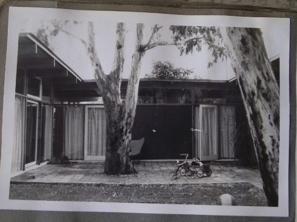 My father-in-law was an architect and this is a photo of the first house he built in the late fifties for his beautiful young wife and son. I love the mood it sets, seeing the bike abandoned, the open door, possibly in favour of a more urgent project for a busy little boy. The owner of the bike grew up and is now my husband.