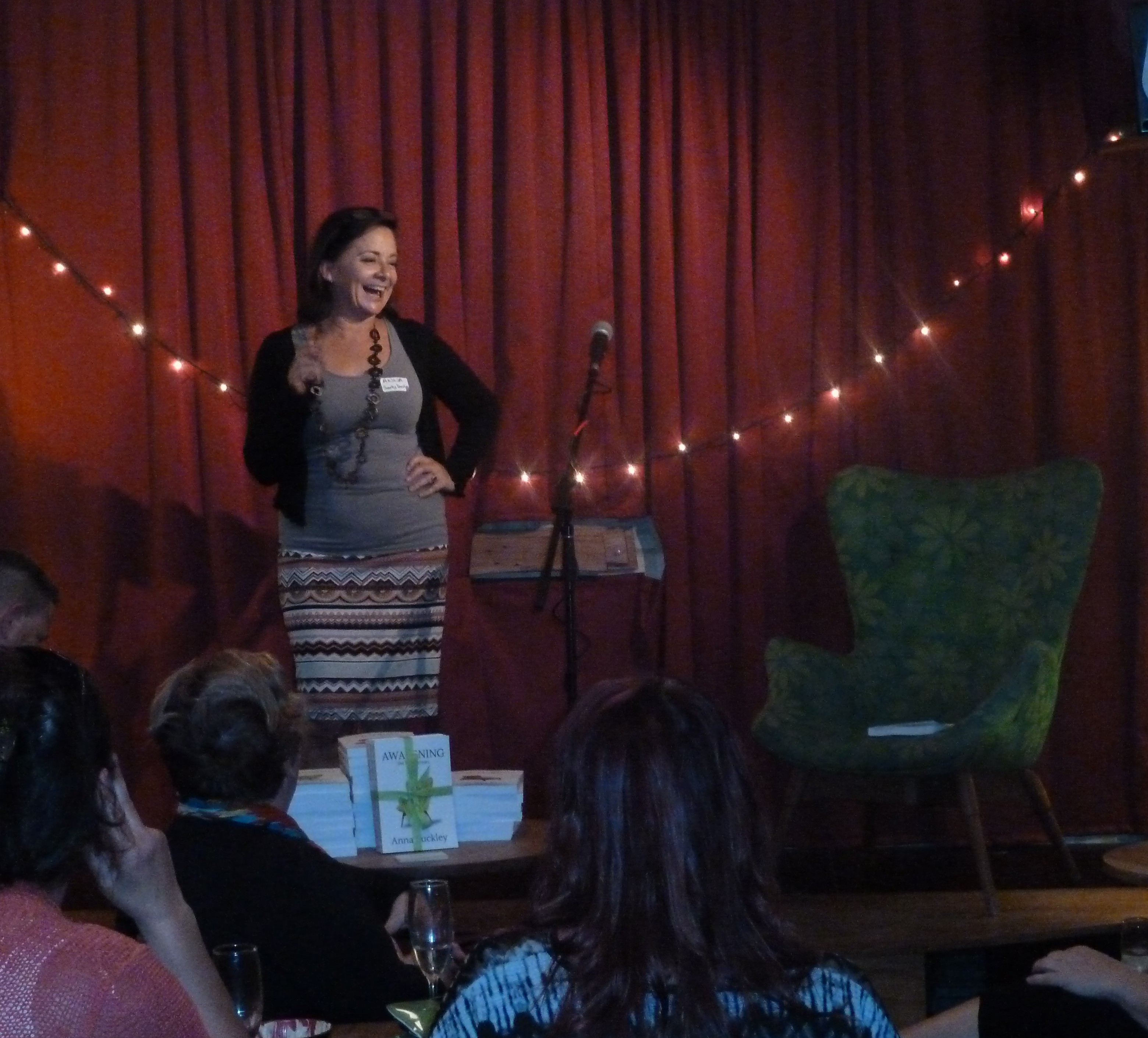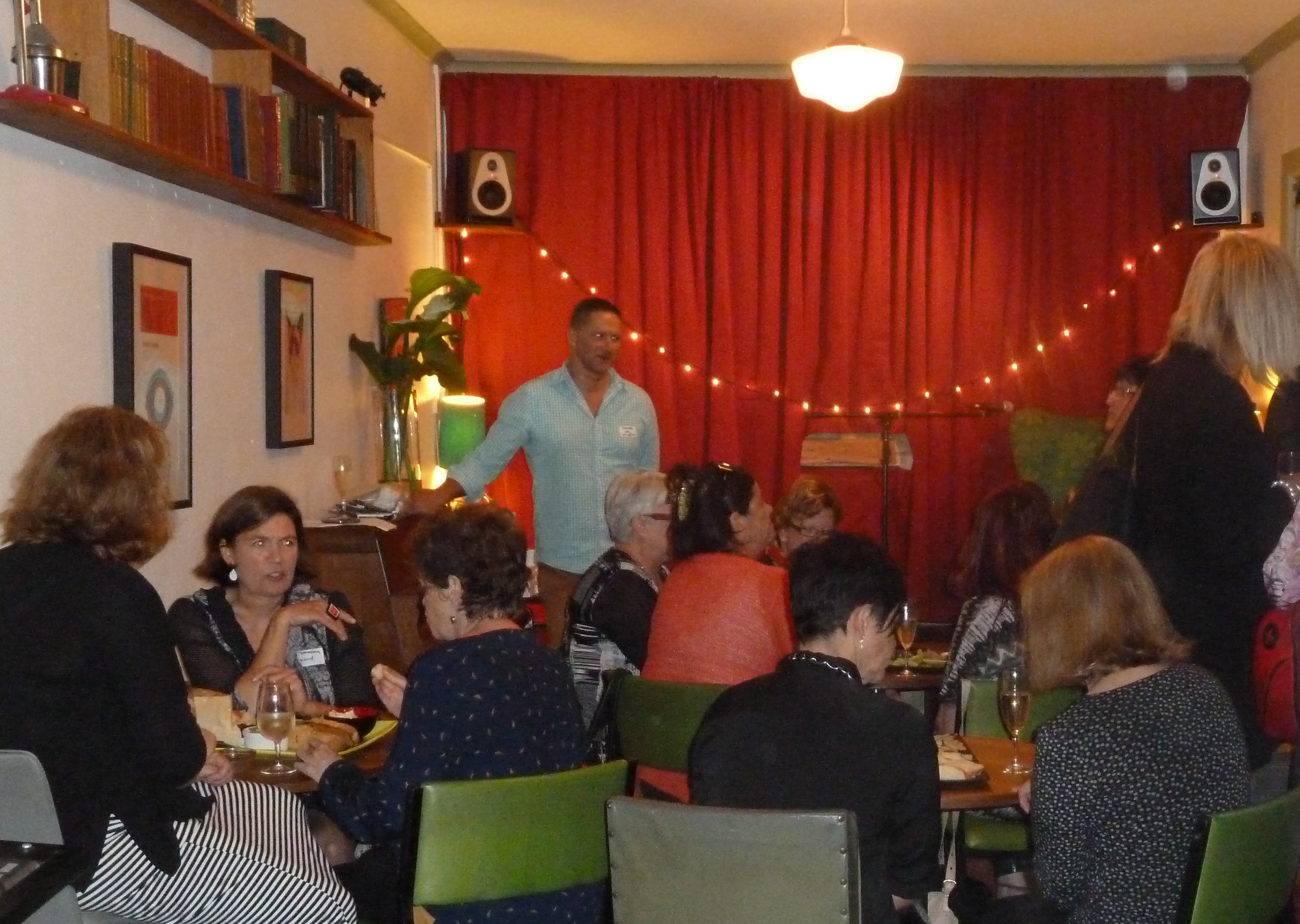 058It’s 6.30 pm on a rainy Monday evening. I arrive to find an original Featherston chair sitting on stage (thanks Lucy for lending us your precious family heirloom). Doris is checking that all is in order and we are both hoping our guests will brave the violent Melbourne weather and venture out…