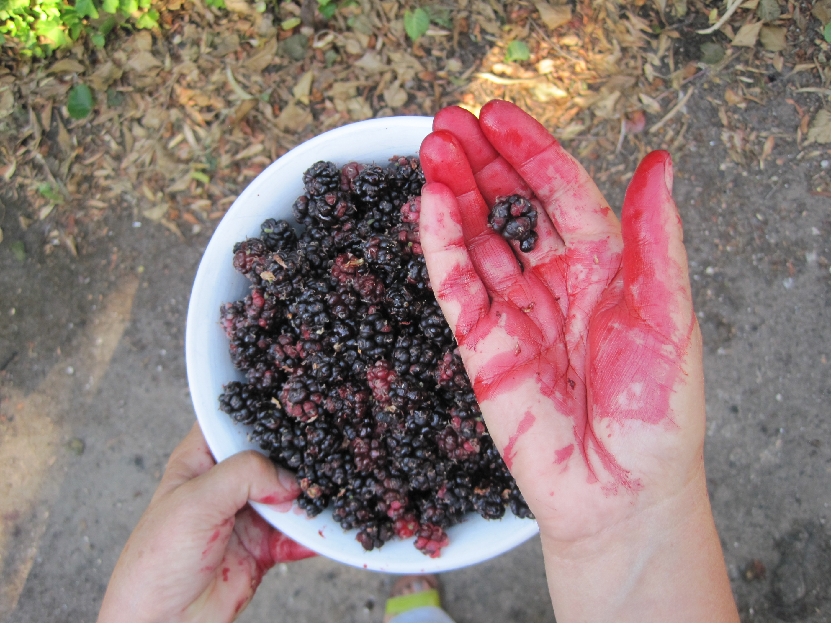 IMG_5654But the very best thing we discovered was this beautiful big old mulberry tree groaning with ripe purple fruit.