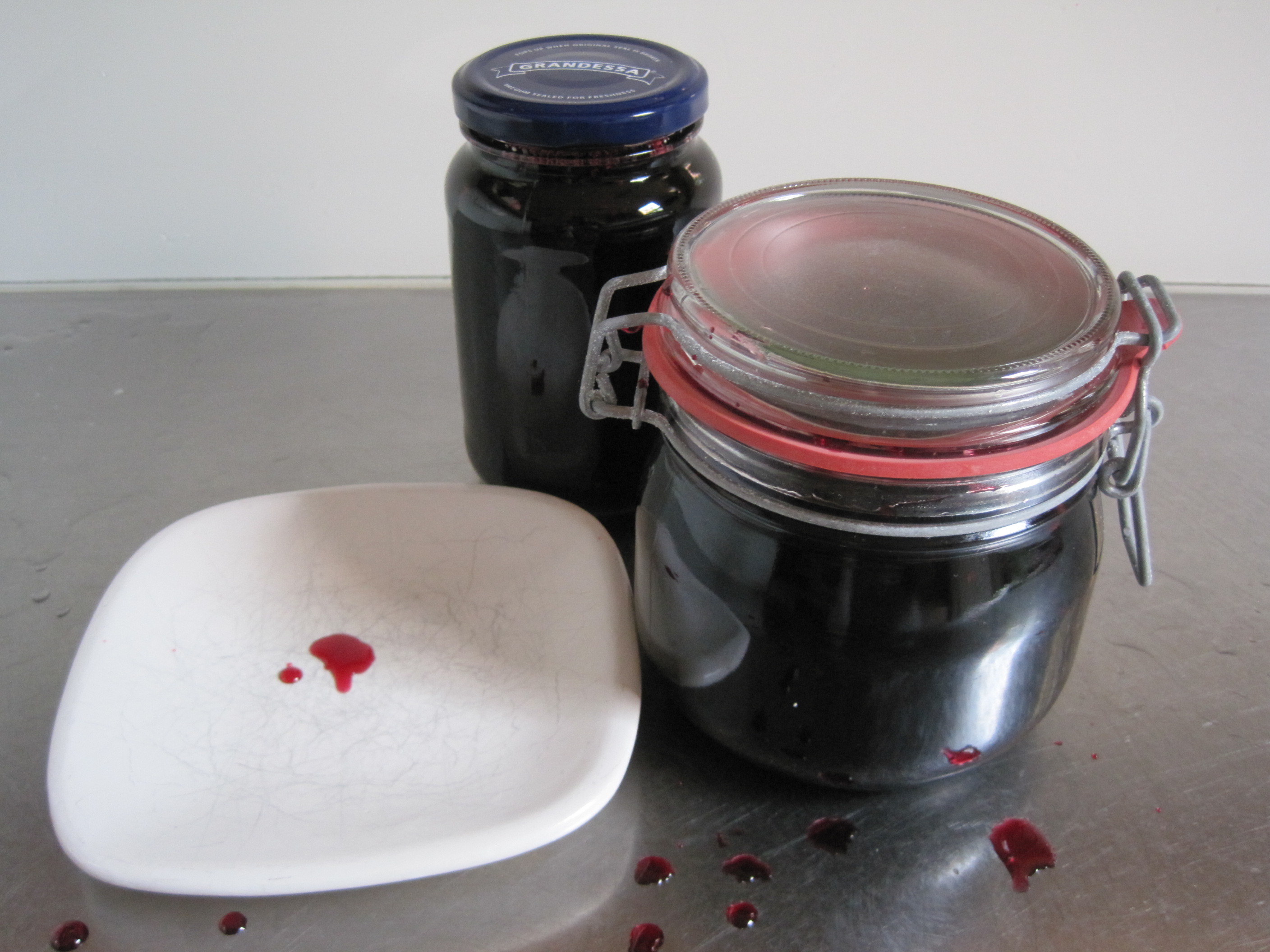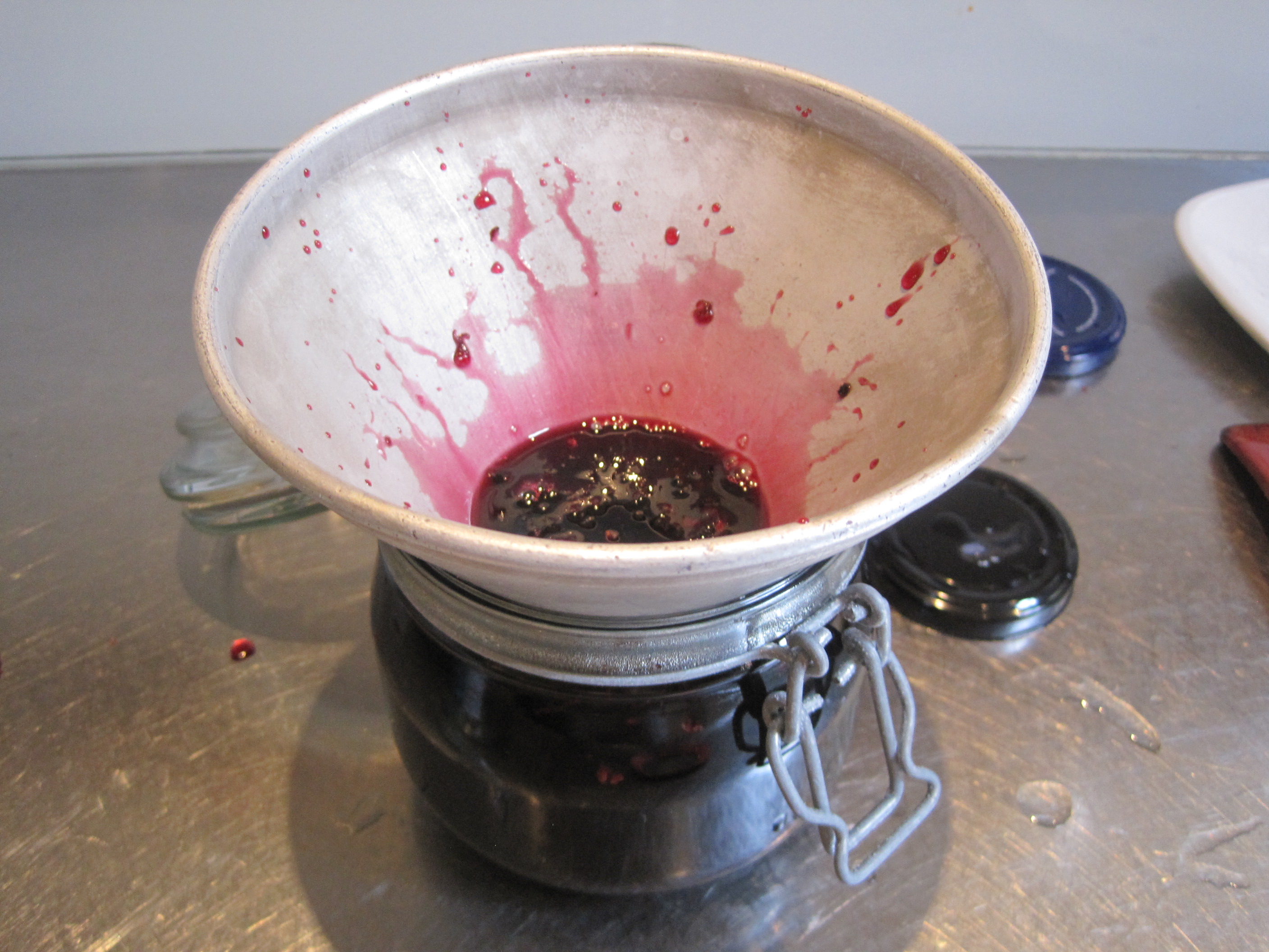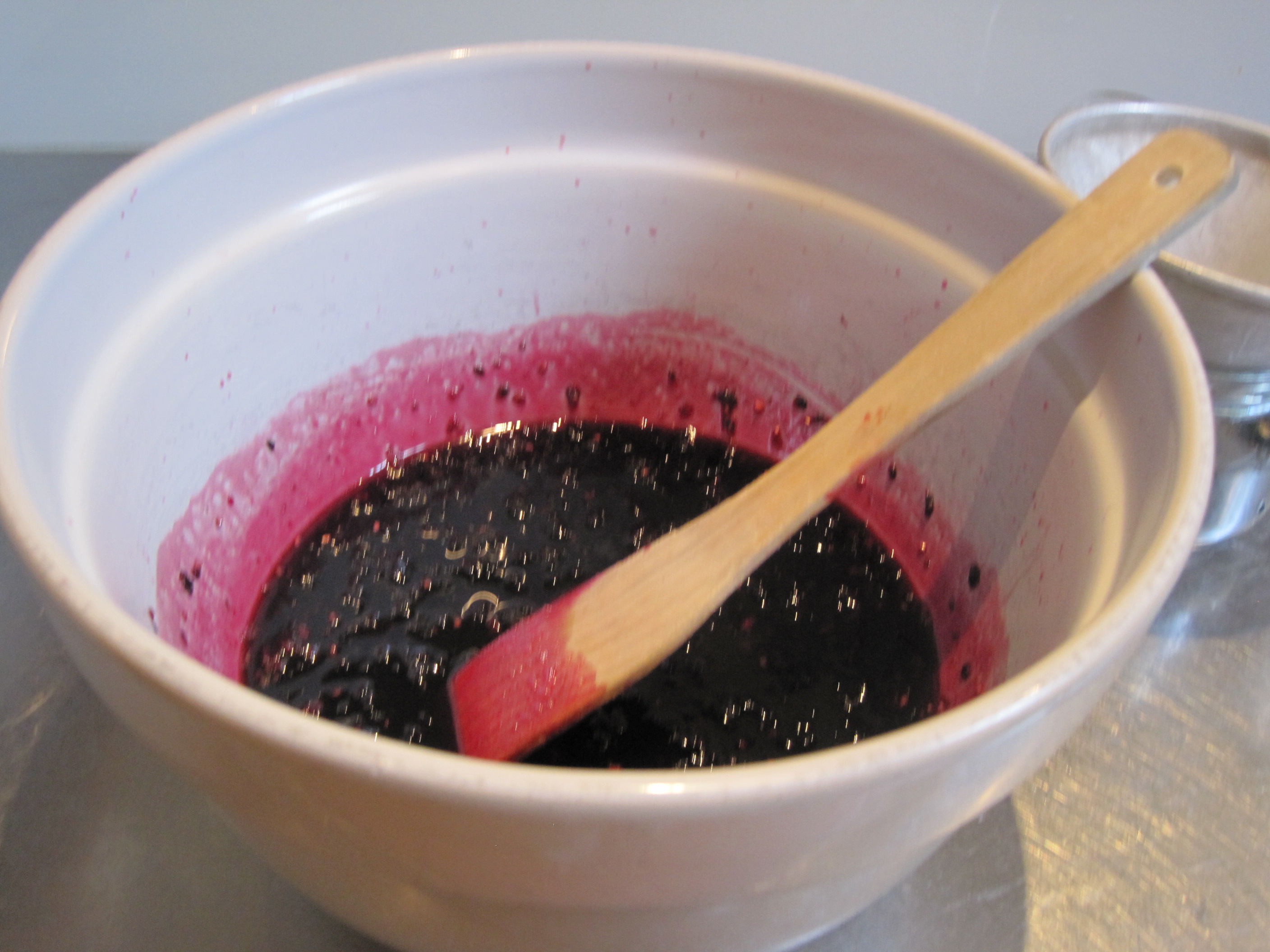 IMG_5734We got home at about four in the afternoon and while the men sorted the wine I decided to do something with the now overly ripe and somewhat squashed berries and finally give you the secret of microwave jam.