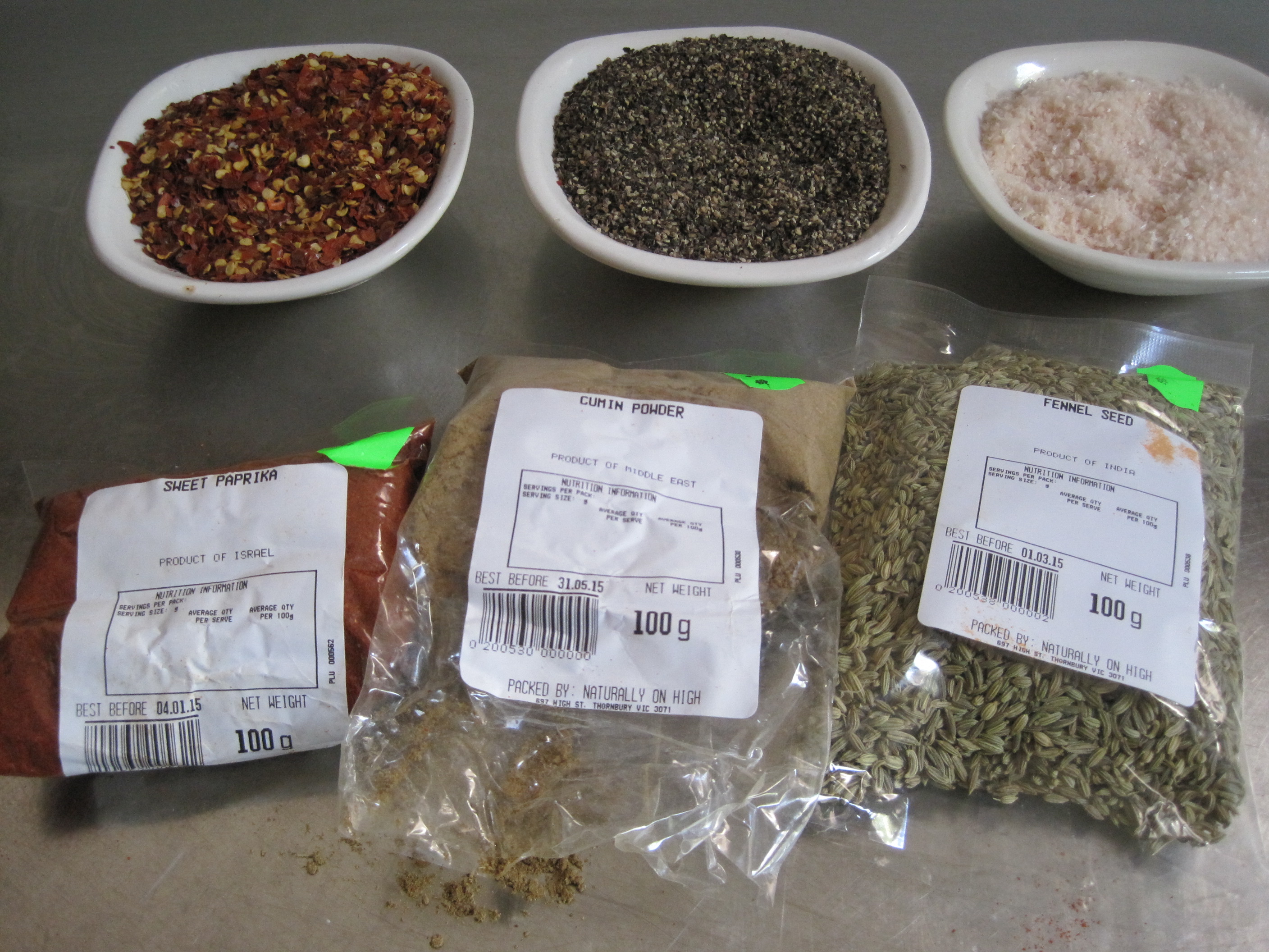 1 tablespoon each of ground cumin, sweet paprika and fennel seed