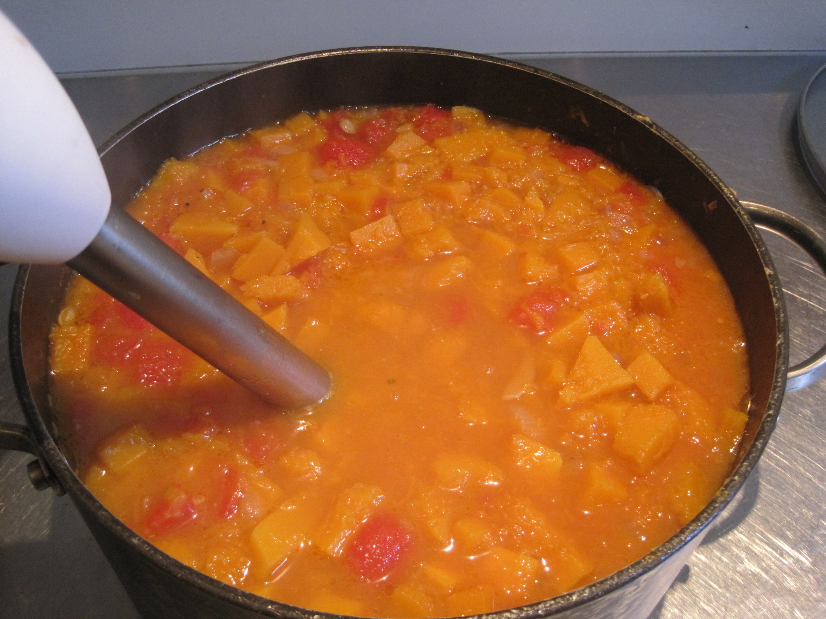 8-When soup is boiling and pumpkin is soft add tomatoes.