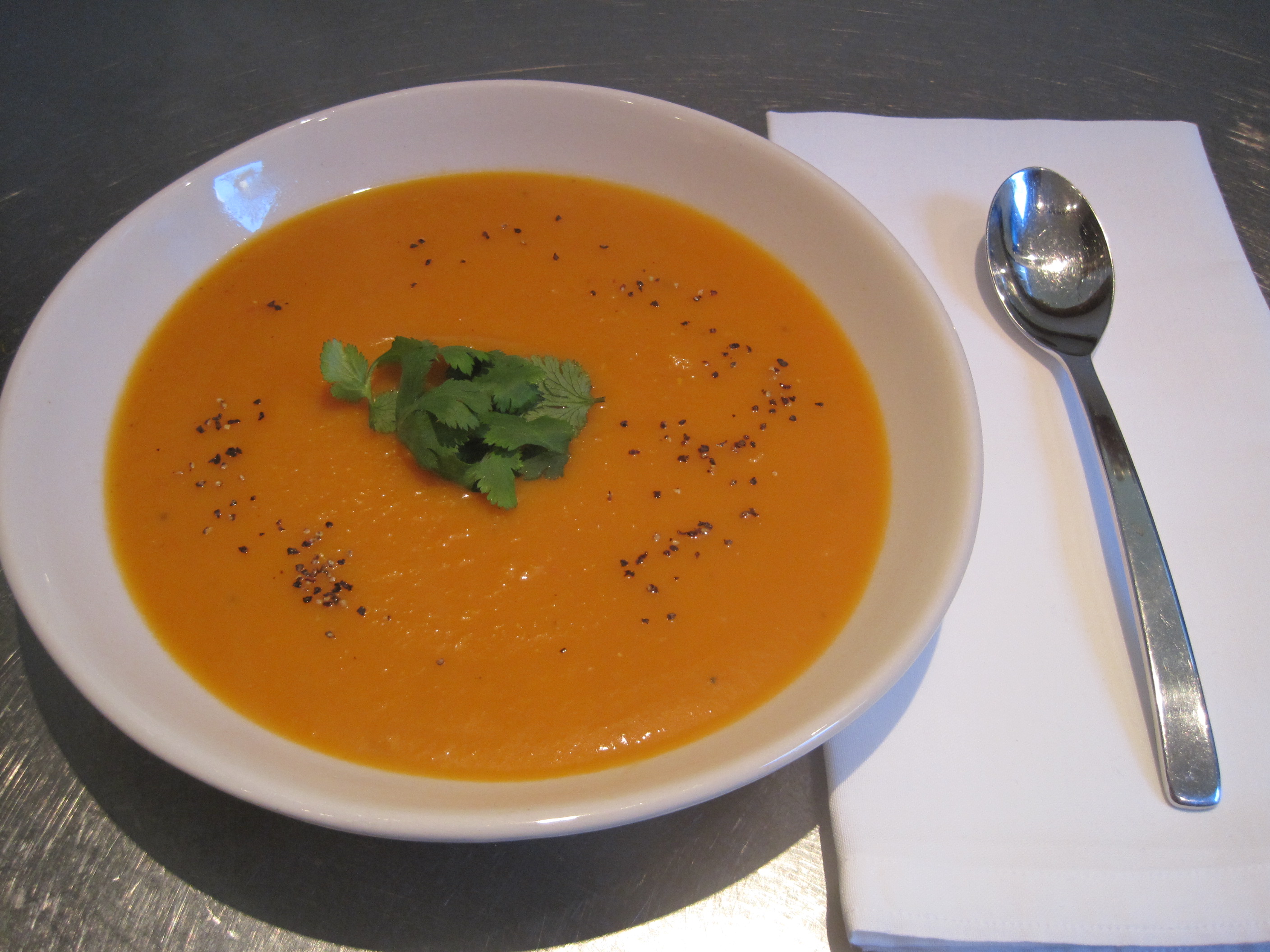 PUMPKIN, GINGER AND TOMATO SOUP.