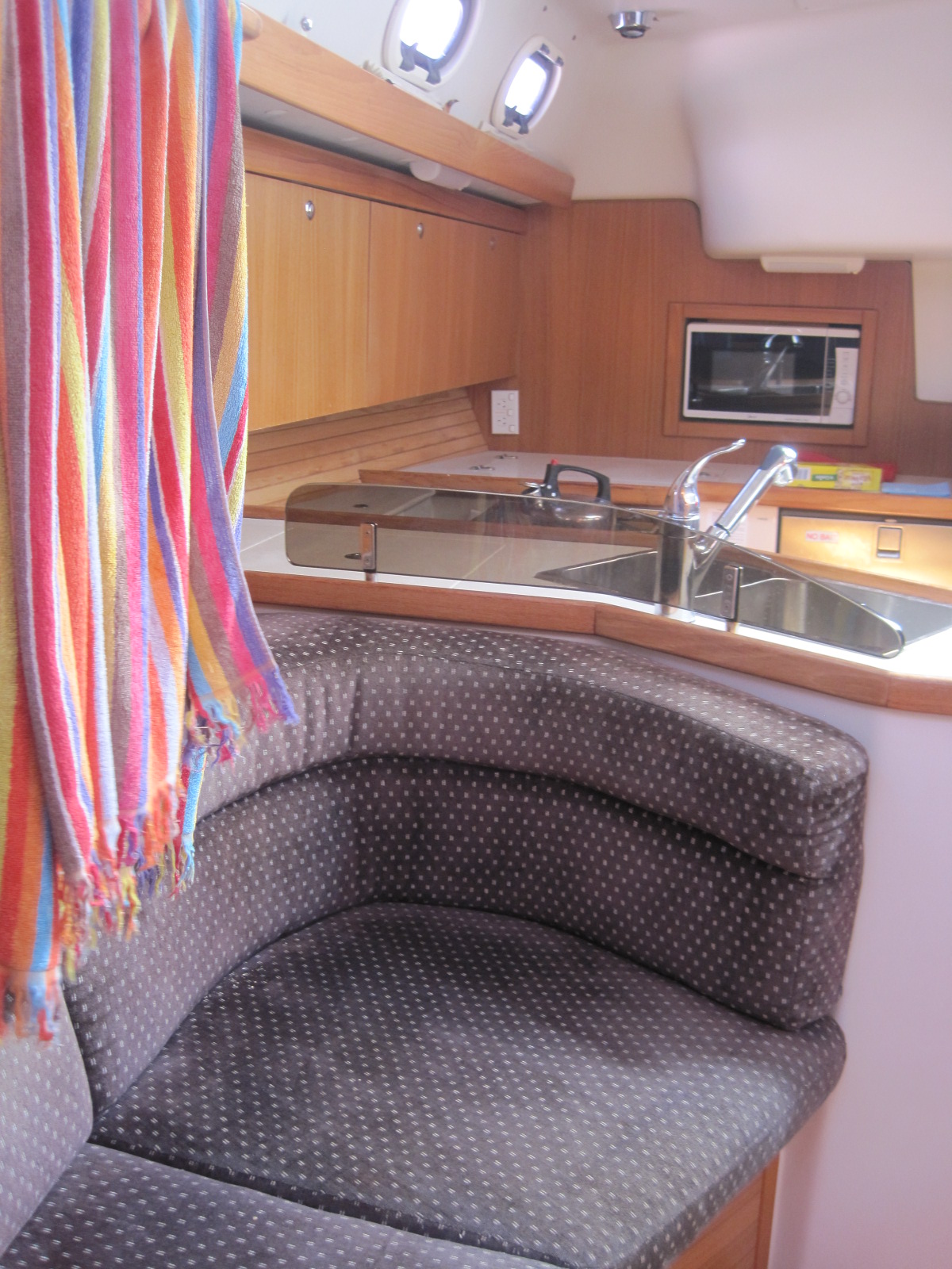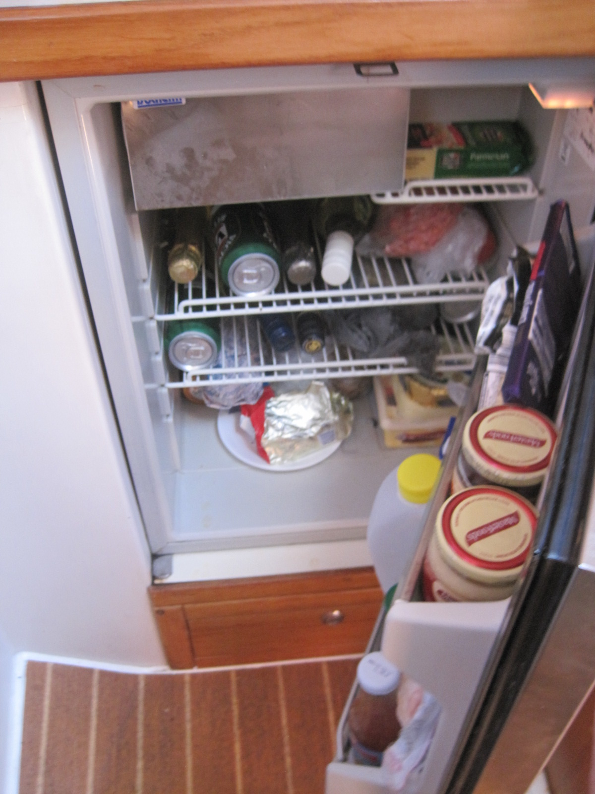 The kitchen was packed full. Keeping things in boxes on the floor would never do. Everything had to be securely stowed (yes Bruno, I’d been paying attention!) before we hit the high and very unstable seas. What to do? We’d packed very little clothing, swimwear, sarongs and shorts, so we filled the empty drawers and cupboards in the bedrooms with the remaining food.