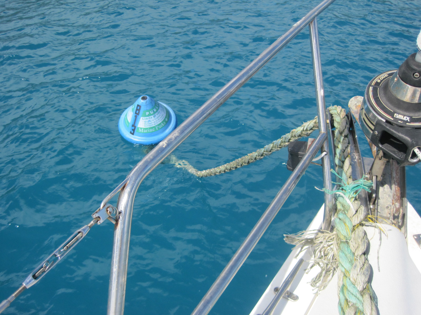 We found our blue mooring buoy and after a few attempts finally secured the boat!