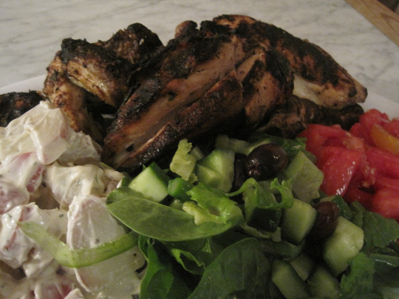 Dinner that night was simple. Grilled chicken, potato salad, greens and those yummy tomatoes we’d picked up on the way.