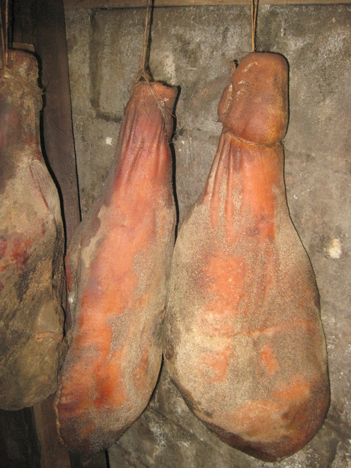 The hams are left to cure for at least six months.